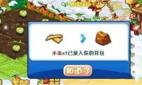 3、收获农作物之后我们就能获得木条了。(目前游戏中只能通过收获农作物来获取木条)