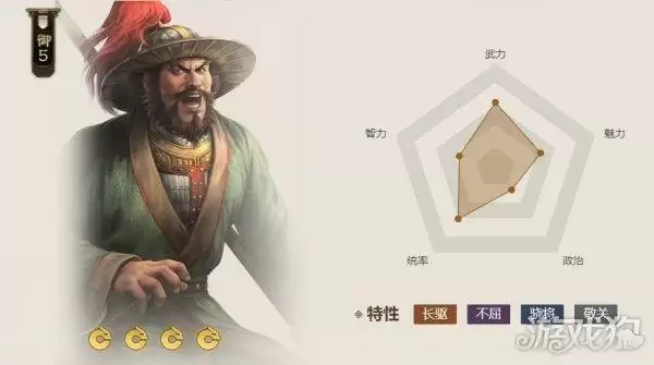 关平可造成两段兵刃伤害,而且第二段伤害是打后排的,因此对于龟缩后方的弓手武将能造成较大威胁。然后周仓提供稳定控制的情况下,朱然也能更稳定的进行谋略伤害的输出,最后的黄权和沙摩柯分别补充阵中稍显不足的谋略伤害和兵刃伤害,后者提供的计穷也能够有效限制敌人的战法施放,从而保障输出环境。