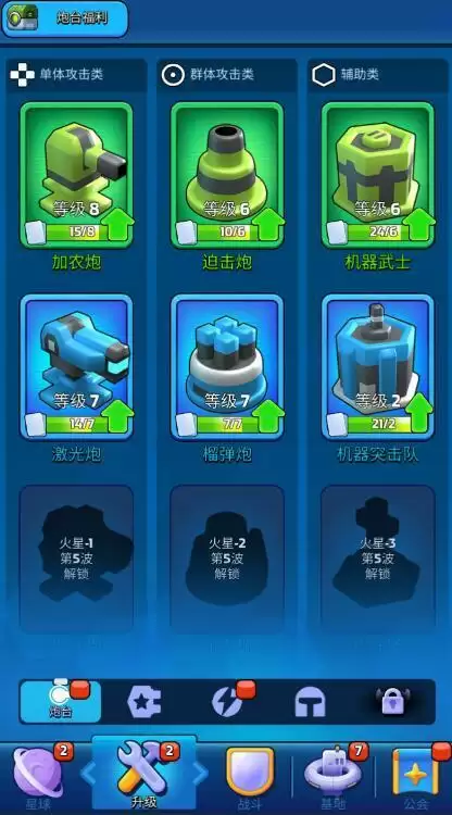 2、挑战关卡获取的材料要记得升级一下你已经配置的炮台