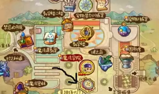 1、打开世界地图,点击魔法学院。
