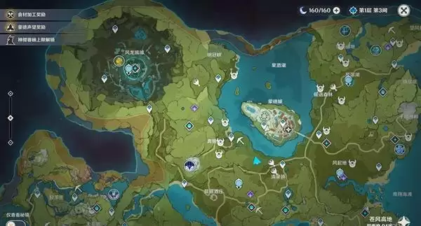 1、我们进入游戏后打开地图,将地点选择在蒙德。