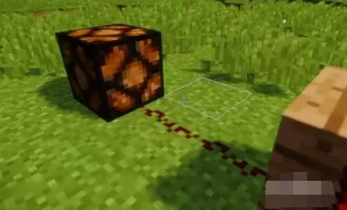 4、在一个方块那接通红石信号。