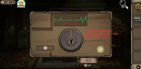 在游戏里面玩家在开保险箱的时候需要注意的就是就是中间按键的位置还有上面的红灯,在游戏里面这个就是要考验玩家的反应速度了,不过这三个灯每次亮的位置和上次都是一样的,所以需要玩家多尝试几次。