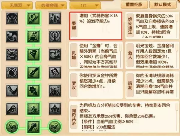1、妙缔金莲:辅助系,治疗回复,增益强化