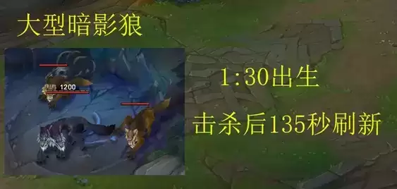 2、大型暗影狼:1分30秒后出生,击杀后135秒刷新。