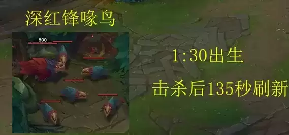 1、深红锋喙鸟:1分30秒出生,击杀后135秒刷新。