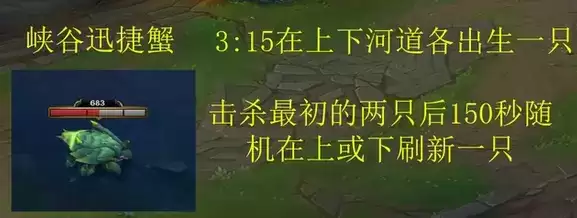 7、峡谷迅捷蟹:3分15秒后出生,击杀后150秒刷新。