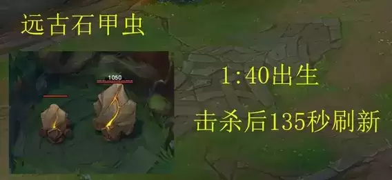 3、远古石甲虫:1分40秒后出生,击杀后135秒刷新。