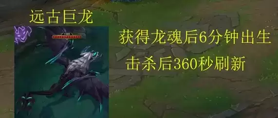 11、远古巨龙:获得灵魂后6分钟出生,击杀后360秒刷新。