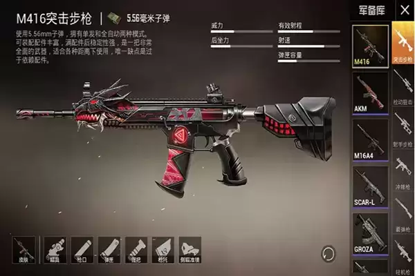 M416在满配的情况下射速非常稳定,后坐力小,一梭子打完基本都在一个点。