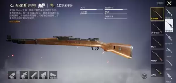 98K是游戏中比较常用的狙击枪,主要是它的使用手感比较好。