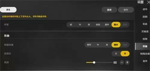 在“图像”界面下,玩家可以看到有七种不同的帧率,他们分别为“低、中、高、极高、超高、*大、极限”。实际上,一般玩家只要把画质调到超高就可以,在往上调手机设备估计会带不动。另外,如果玩家的手机配置比较低的话,不妨把画质调到“中”或者“高”级别,这样的画质对游戏体验的影响并不明显,玩家只要适应就好了。