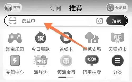 1、来到淘宝首页,点击上方的搜索栏目。