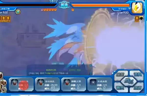 2、然后上场属性克制谱尼的精灵,死了没关系,基本上一击可以打掉半管左右的血量。