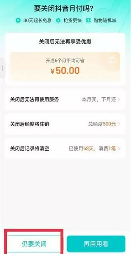 6、在账户管理界面中我们点击下方的【关闭抖音月付】。