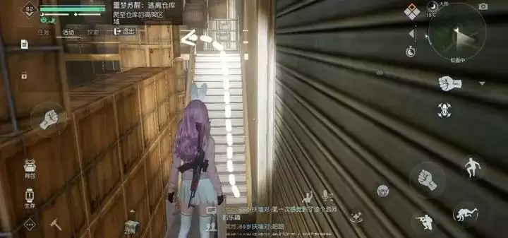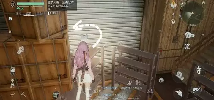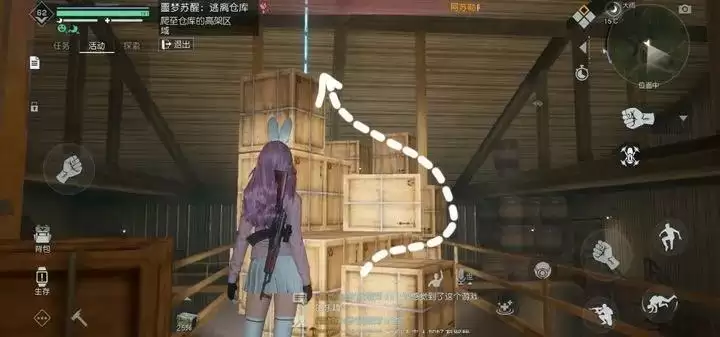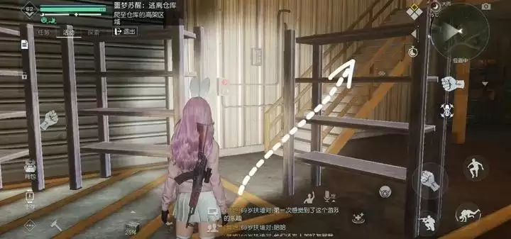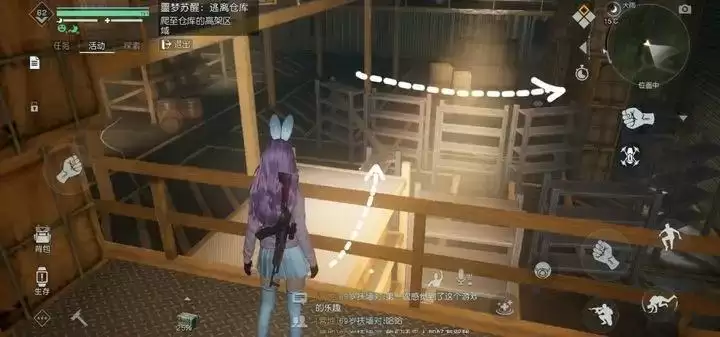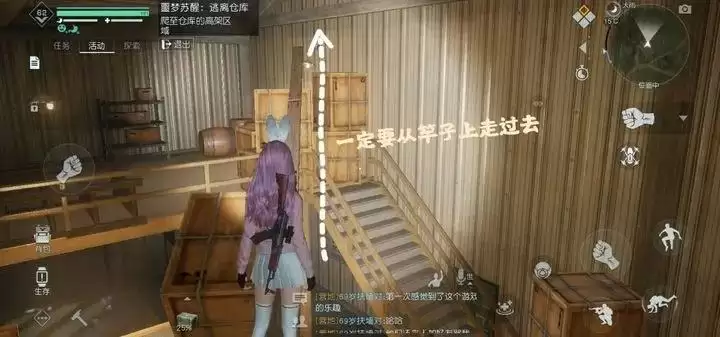 第十步:看见蓝色的梯子了吗,跳上去就成功逃离仓库啦!