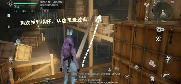 第八步:找到图示位置,往前走到尽头右转顺着横杆上去