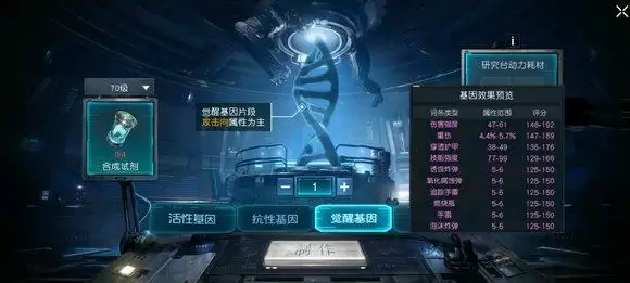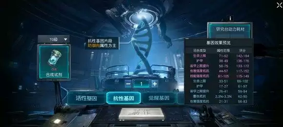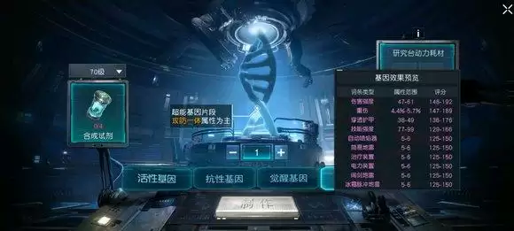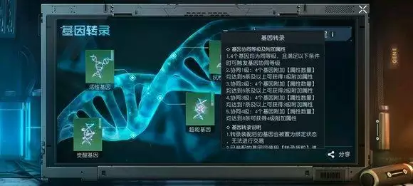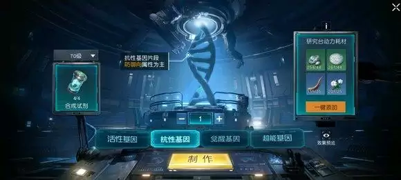 基因制作:【图4-图7】四种基因分别对应四个基因槽,活性基因、抗性基因是防御类型的,觉醒基因是攻击类型的,超能基因是有攻有防的。