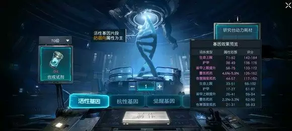 70级完成基因引导任务给你个基因研究台,自己回庄园放。基因研究台三个功能,基因制作(字面意思),基因重组(类似装备的属性转移+改造二合一),基因转录(也就是把基因装备上去,加面板加战力)。