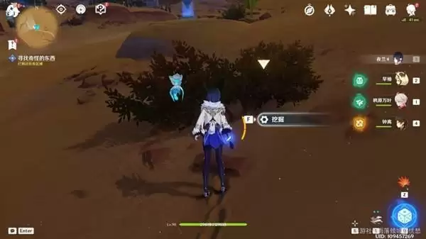 1、跟着任务指引来到草丛旁边点击挖掘
