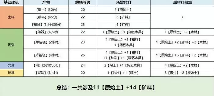 2、原始土和矿料主要用来制作 陶土、釉彩、釉料等,在后期也会成为村民委托、蒲公英小队的常见需求品,还可以用来制作陶瓷等。