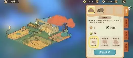 1、当玩家等级达到20级就可以解锁息壤,息壤玩法是和竹林的玩法一致的,并且产出也是相同,但是息壤可以产生两种产物:原始土、矿料。