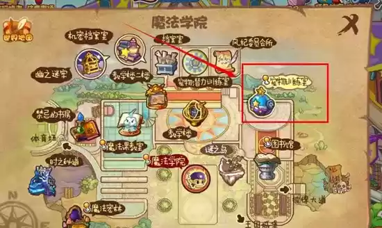2、再打开魔法学院地图,点击宠物训练室。