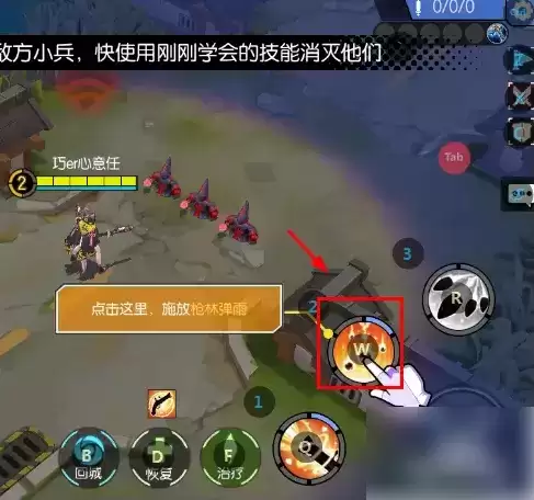 点击技能,释放枪林弹雨,如图所示