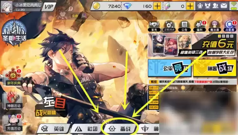 首先玩家们需要先来到游戏的主界面,然后玩家会发现一个“备战按钮”,每个英雄的装备设定就在这个面板里面。