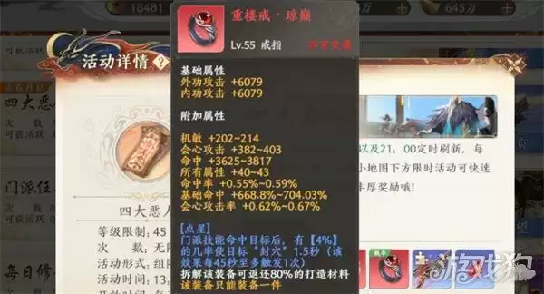 这个活动除了暗器之外还会有一些其他的特殊奖励,包括红色的戒指,还有一些玉石等等,这些都可以对玩家的实力提升起到显著的帮助,所以一定记得要按时参加它,当然,游戏中还有一些其他的暗器也能获取,不过这些也基本都在活动之中,大家可以点击主页的上方的活动来自行查看。