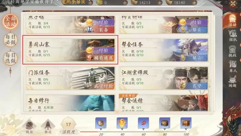 2、少侠可以在【活动】-【勇闯山寨】进入活动玩法,并且可以在参与界面查看活动说明与奖励。