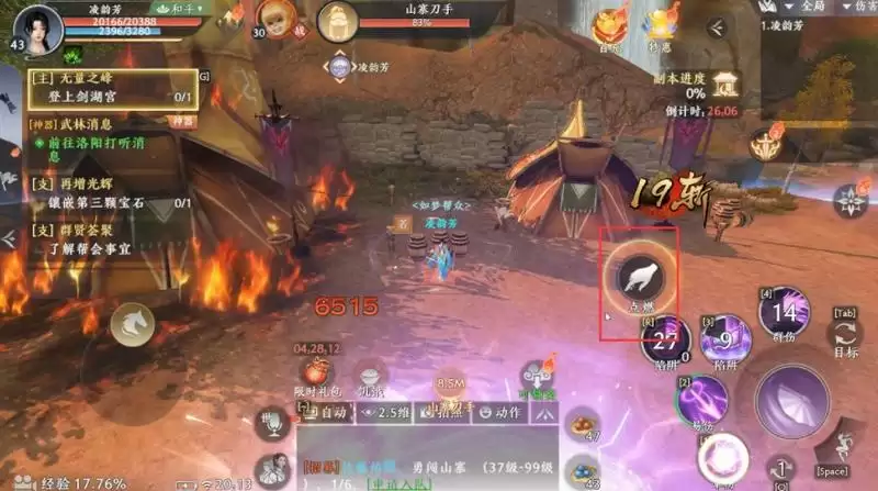 少侠可以将山贼引到【炸药桶】,点燃后可以快速清理山贼。
