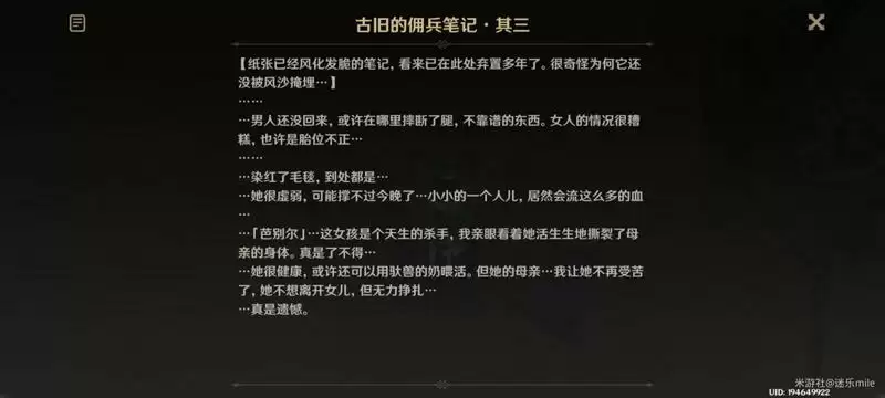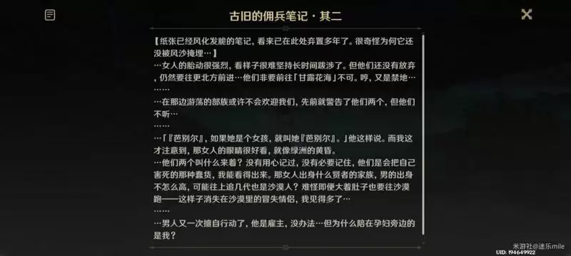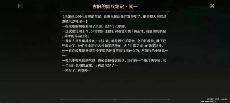 3、古旧的佣兵笔记·其二文本、点位近景如下