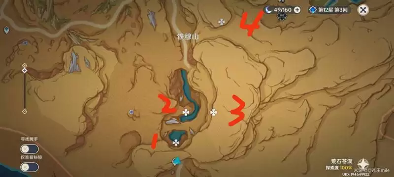 1、古旧的佣兵笔记4张点位如图所示,都分布在铁穆山周边区域