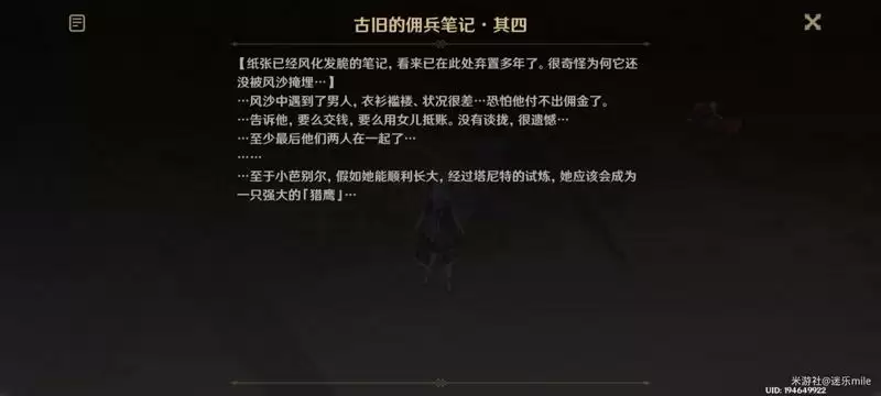 5、古旧的佣兵笔记·其四文本、点位近景如下