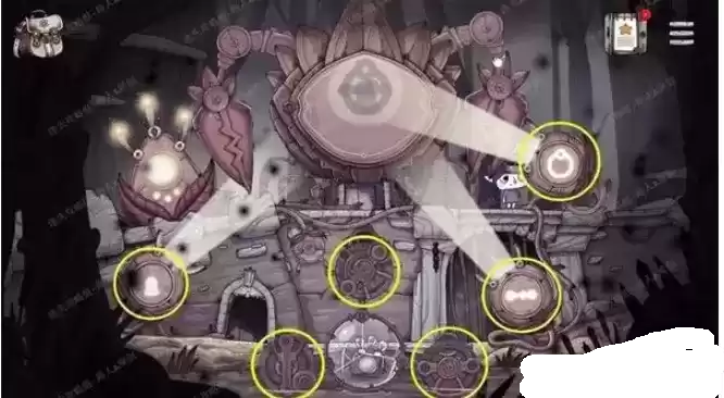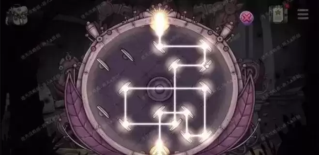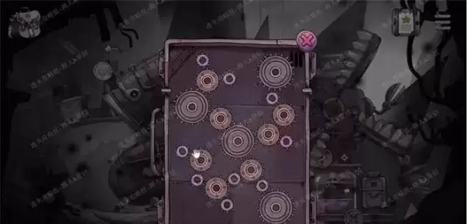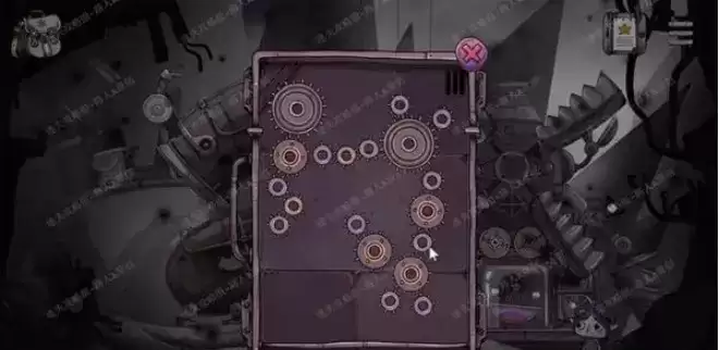 4.拾取地上的齿轮,把它安装到右边的机器。然后分别点击玻璃罩两边的面板,解决齿轮谜题。