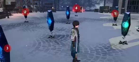 1、我们到如图所示的指定地点,按图片数字顺序攻击尖碑即可。