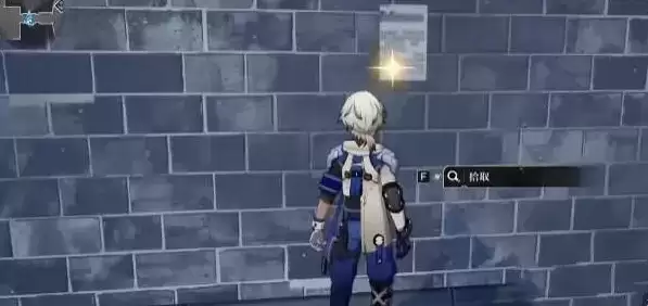 1、我们到墙壁边上,点闪闪发光地方,拾取封文件。