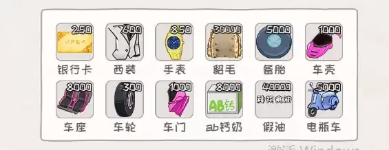 银行卡、西装、手表、貂毛、备胎、车壳、车座、车轮、车门、ab钙奶、假油、电瓶车。