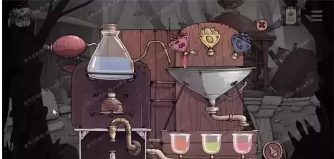5.返回上方,点击右边的装置。根据配方调制药水,把正确药水给铁牢里的生物。