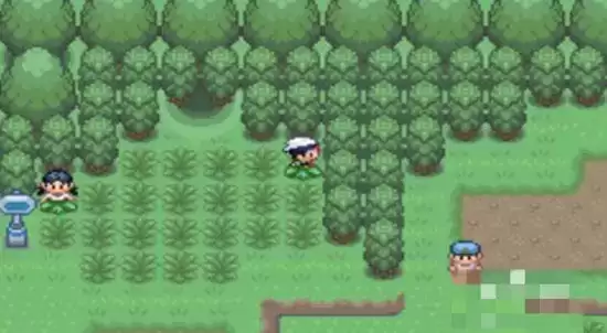 2、在遇到博士的那个位置有草丛,这里有训练家,就在这附近走动。