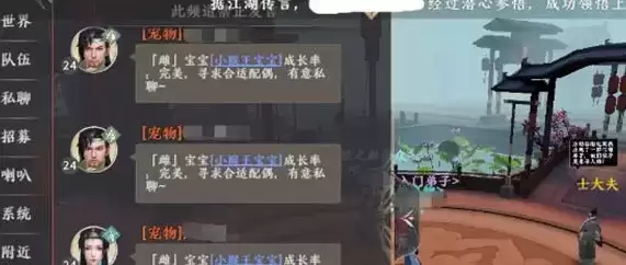 然后还有一些游戏特有的频道,*典型的就是宠物,在这个频道里虽然玩家没办法自由发言,但却可以通过一些快捷的消息传达出为自己宠物寻觅配偶的愿望,这也是游戏中比较重要的一个板块,毕竟宠物的变异就是通过它来进行的。