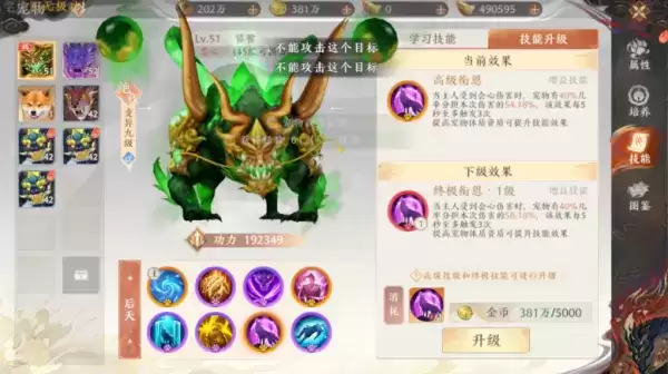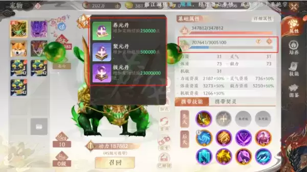 高变神兽有更高的资质上限,神兽的资质可通过消耗洗炼丹进行洗炼提升。