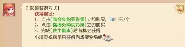 1、在商会处可以购买彩果,消耗六十八仙玉可购买一个。