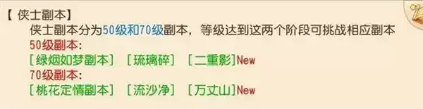 2、70级副本:桃花定情副本、流沙净、万丈山。