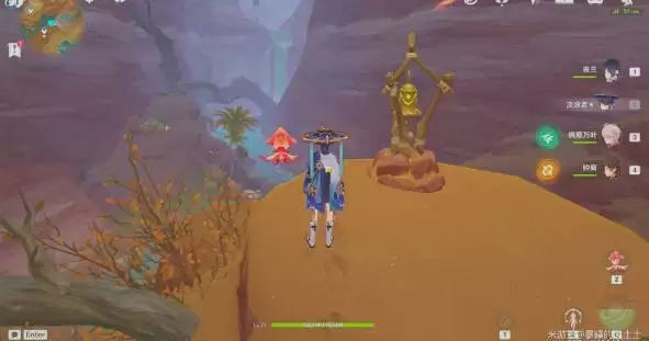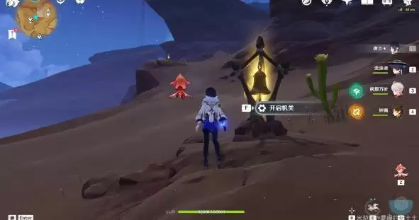 2、附近的锚点上方,我们靠近中间有钟的灵宝铎开启挑战,按照顺序依次触碰其他的灵宝铎即可。