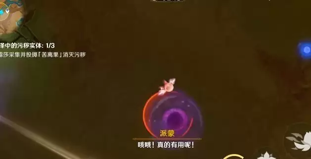 1、玩家需要利用斯露莎采集并投掷苦离果,消灭沼泽的污秽尸体、消灭沼泽的污秽实体,首先使用一下花技能采集苦离果;