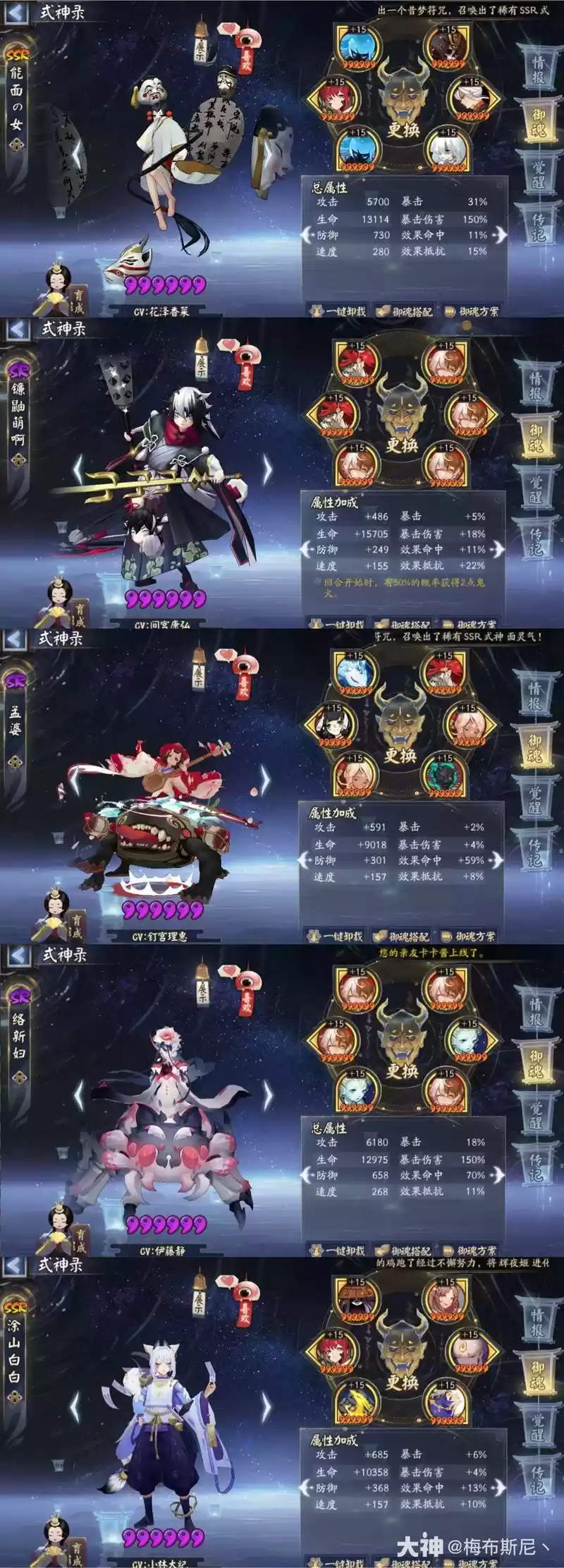姑获鸟:攻攻暴伤超星破势,全队攻击最高,爆伤越高越好。
