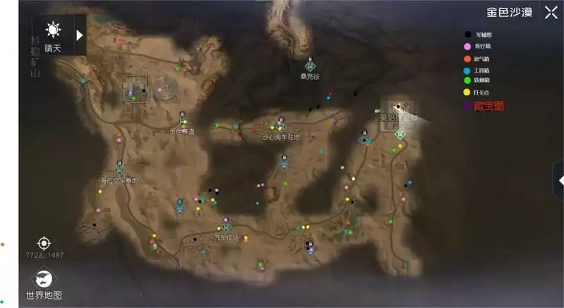 1、金色沙漠打卡点/各类箱子/藏宝图位置一览图(点击图片可放大)