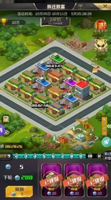 居民楼从来不买,活动第四天工厂出了以后只买工厂和餐厅,餐厅够八个后只买工厂,一般结束后都会够两个五级工厂,如果差一个两个工厂能合俩五级卖其他建筑也要买,直接摆拆迁路口前两个,这个活动我玩了五次每次都是*,这次差的*多,第四天时差了三萬出工厂后用我的方法两天就反超两萬五,这是最后一天*也是稳的。